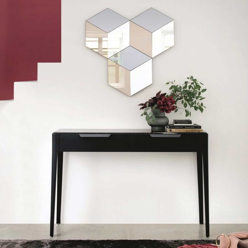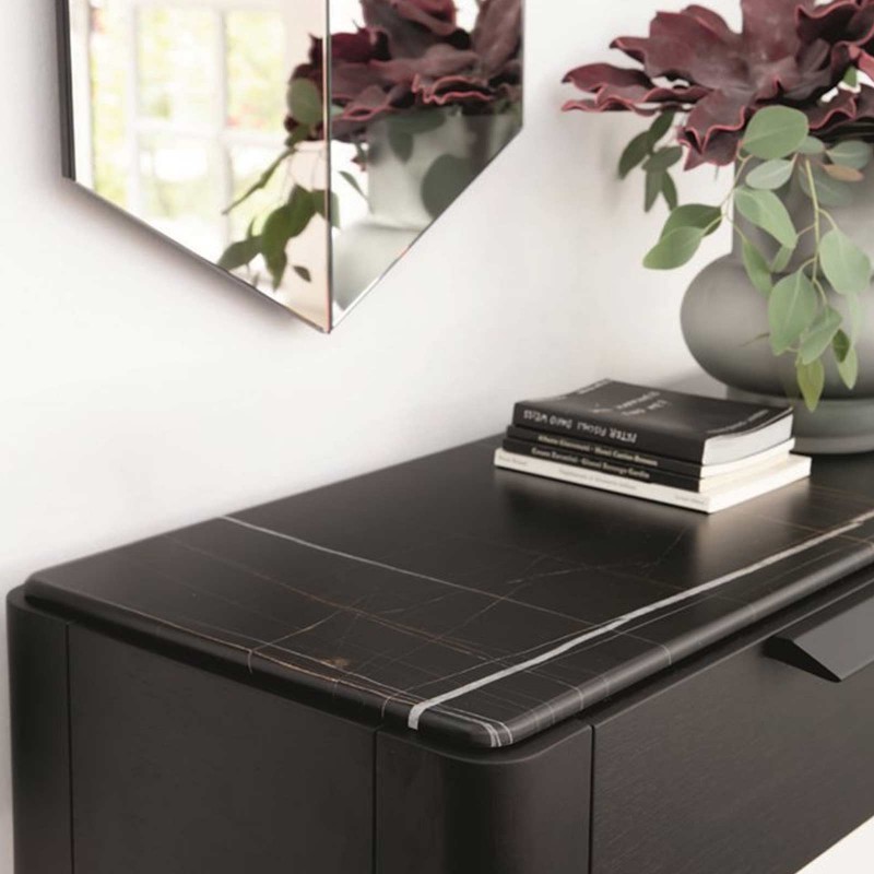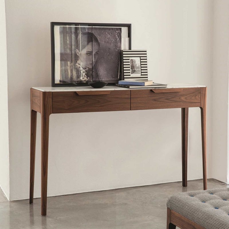 Ziggy est la collection Porada qui comprend des tables basses, des consoles, des tables à manger et un lit. Une ligne polyvalente aux silhouettes modernes et au style élégant, embellie par la structure en noyer canaletta massif ou en frêne. La console Ziggy est parfaite comme meuble d'entrée ou comme bureau et est disponible avec le plateau en différentes finitions, dont le marbre et le verre laqué.
