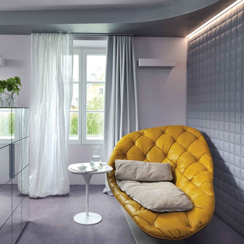 Con Bohemian, Patricia Urquiola rilegge il classico “capitonné” e lo interpreta in modo assolutamente originale. La chaise longue si caratterizza per la sua forma quasi fluida, dove le linee morbide della struttura avvolgono la seduta. Il rivestimento, sia esso in tessuto o in pelle, è fissato alla scocca tramite dei bottoni automatici.