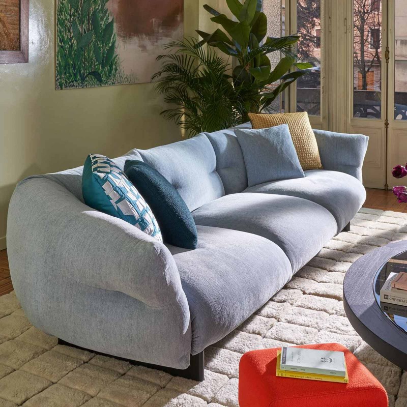 Qui è proposto nella versione lineare a 2 e 3 posti, ma è disponibile anche con chaise-longue e composizioni personalizzabili.
