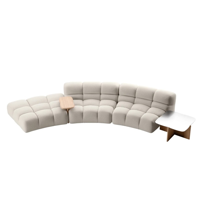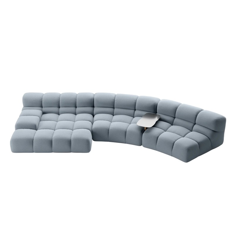 Al suo 20esimo anniversario, il celebre sistema di divani Tufty time di B&B Italia design by Patricia Urquiola viene reinterpretato in modo evoluto pur mantenendo i tratti originali che l'hanno reso iconico, tra cui comfort, modularità e libertà compositiva ed estetica trapuntata inconfondibile. I volumi, le imbottiture e l’altezza della seduta sono stati riprogettati per offrire una comodità maggiore. Inoltre l'integrazione del modulo curvo rende Tufty Time ancora più flessibile, dando la possibilità di creare composizioni più conviviali, adatte ad ambienti residenziali e contract, e in linea con le tendenze attuali all'insegna delle silhouette sinuose. Ultimo ma non meno importante è l'anima sostenibile di Tufty Time: la versione Tufty Time 20 si può interamente dividere a fine ciclo di vita del prodotto per essere tutti recuperati e riciclati: una conferma dell'impegno di B&B Italia a perseguire la strada dell'economia circolare.