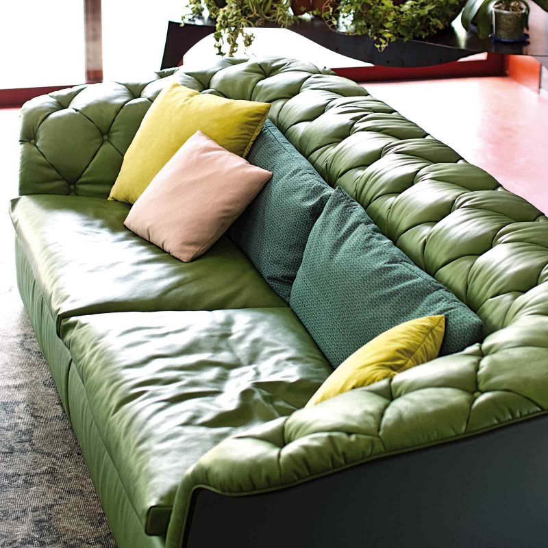Con Bohemian, Patricia Urquiola rilegge il classico “capitonné” e lo interpreta in modo assolutamente originale. Il divano si caratterizza per la sua forma quasi fluida, dove le linee morbide della struttura avvolgono la seduta. Il rivestimento, sia esso in tessuto o in pelle, è fissato alla scocca tramite dei bottoni automatici.
