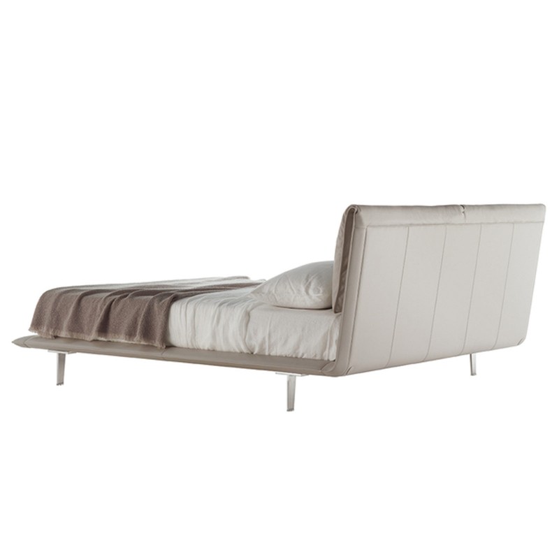 John-John è il letto di Poltrona Frau progettato da Jean-Marie Massaud caratterizzato da due grandi cuscini che formano la testata e rimandano vagamente agli schienali dei divani. I delicati e sottili giochi di pieghe ottenuti grazie ad accurate lavorazioni artigianali valorizzano la tattilità della pelle. Piedini in alluminio con fi nitura Ruthenium. John-John è sinonimo di eleganza contemporanea.