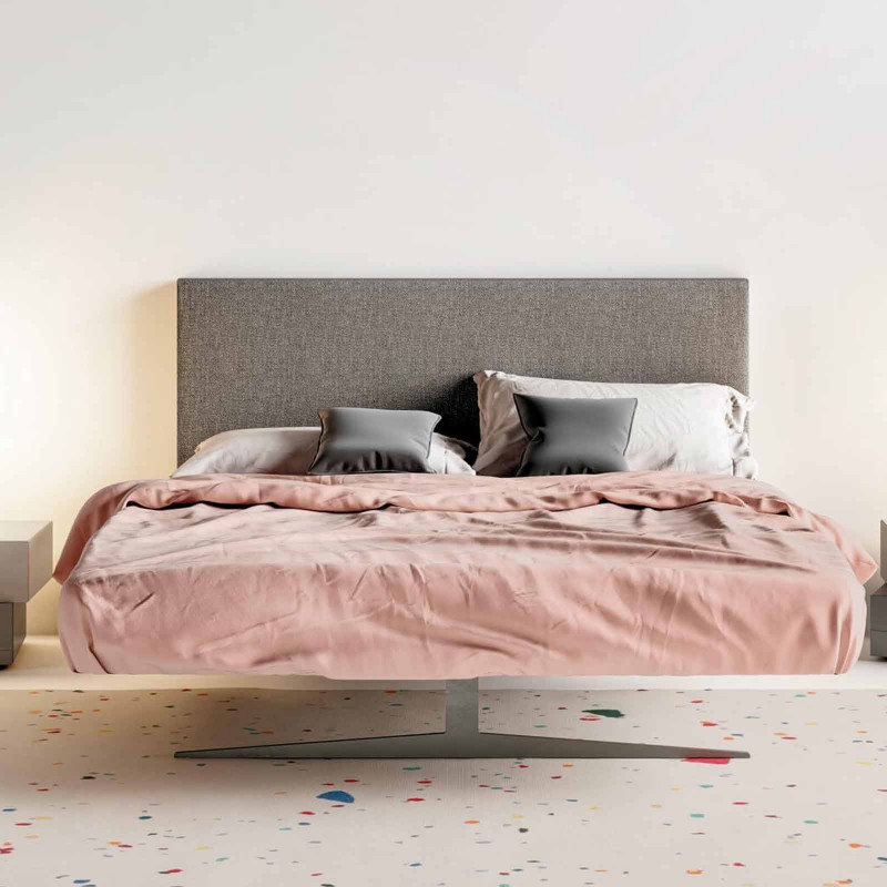 Il letto Steel qui proposto è la versione con pianale freestanding e testiera fissata a parete.