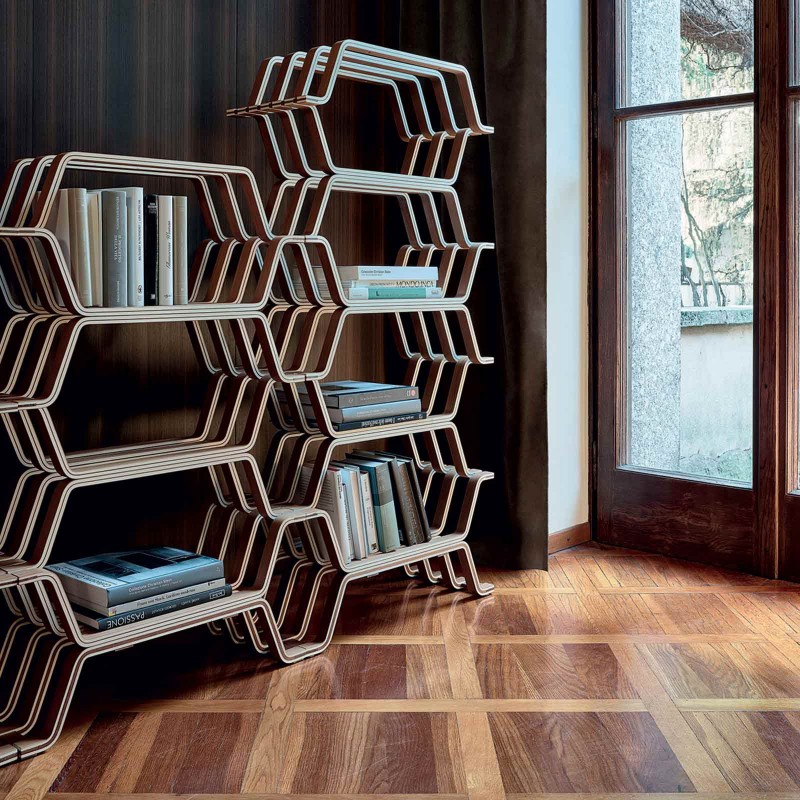 La libreria MHC.2 di Molteni&C è una riedizione del prototipo della libreria disegnata nel 1959 da Yasuhiko Itoh. A moduli esagonali, è realizzata in legno curvato, lavorazione complessa per l’epoca, MHC.2 fu premiata alla 3° edizione della Selettiva di Cantù del 1959. Il risultato è un pezzo elegante e raffinato. Dopo una prima riedizione limitata di 100 pezzi numerati, è ora disponibile in serie non numerata in legno curvato rivestito in noce.