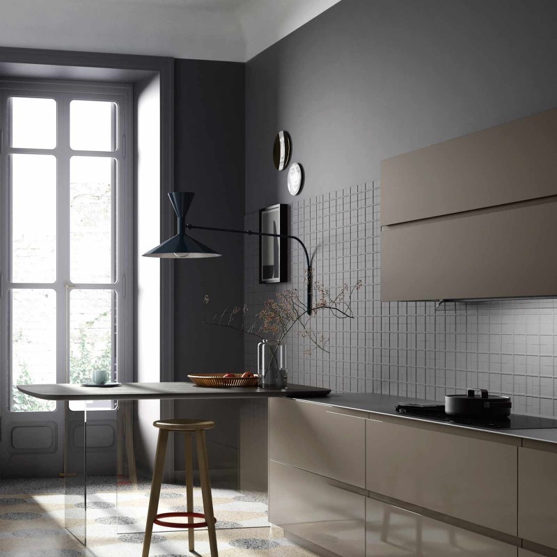 M_26 predilige materiali nobili come il laccato lucido o opaco, il legno e la pietra, e si distingue per il generoso spessore dei frontali 26 millimetri. Inoltre è la prima collezione i cui contenitori, oltre a vantare una maggiore capienza dovuta al loro diverso dimensionamento, sono assemblati utilizzando componenti aggiornati come cerniere con chiusura rallentata, piedini rinforzati, meccanismi per ante a ribalta etc. La collezione M_26 prevede cinque sistemi di apertura che danno il nome ad altrettanti modelli: M_26 Maniglia, M_26 Gola, M_26 Presa, M_26 Vela ed M_26 Profili.