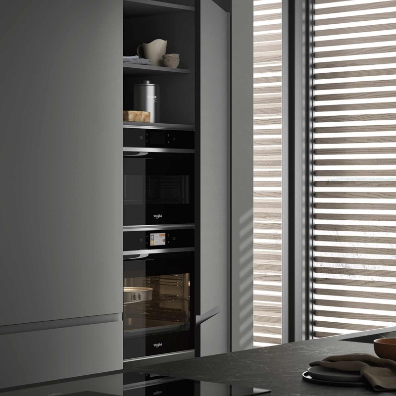La lavorazione a vela sul frontale consente di mantenere le stesse funzionalità di una maniglia tradizionalità, senza dover aggiungere altro al frontale stesso.