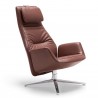 Downtown Lounge è la declinazione in chiave relax dell'office chair Downtown disegnata da Jean-Marie Massaud per Poltrona Frau. Tra le novità 2025, la poltrona concepita originariamente per i workspaces approda nel mondo residenziale con un'ergonomia rivisitata: lo schienale è leggermente inclinato per favorire la postura naturale e confortevole fornendo un sostegno completo fino alla testa. Downtown Lounge si fa apprezzare non solo perché è un invito al relax, ma anche per la sua estetica raffinata. In questa versione è proposta con basamento girevole in metallo a 4 razze.