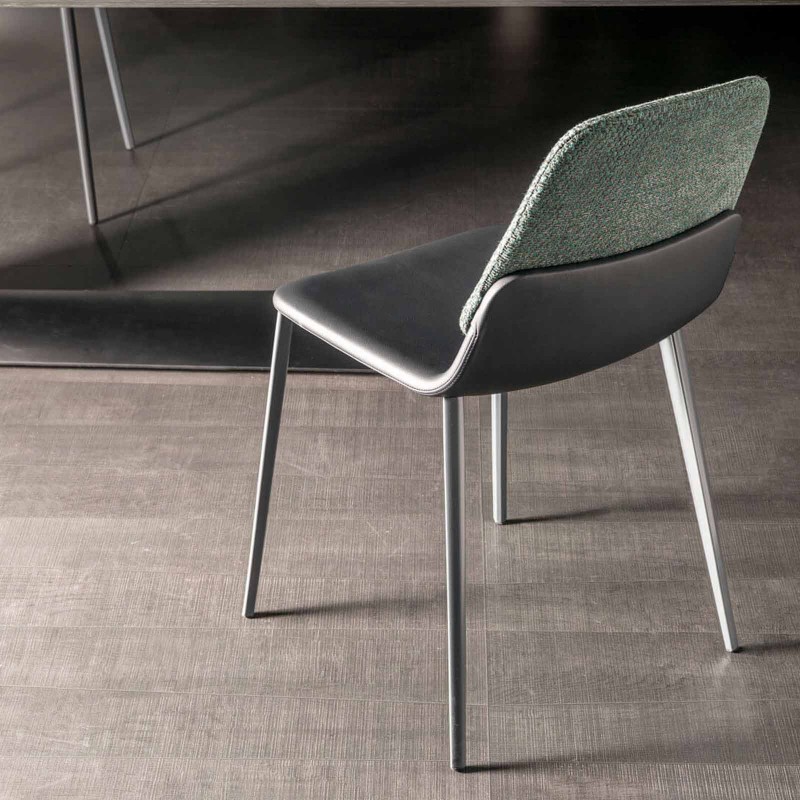 Mix and match e linee sinuose sono le parole che descrivono al meglio la sedia Ermes di Lago. All'insegna della libertà compositiva, Ermes può essere personalizzata combinando i tessuti e le pelli della seduta e dello schienale. A te la scelta di giocare con i contrasti cromatici o mantenere il tono su tono secondo il tuo stile! La struttura metallica è leggera e in un sofisticato color grafite; mentre la seduta, ergonomica, e lo schienale sono imbottiti per garantire il massimo comfort.