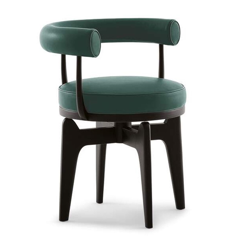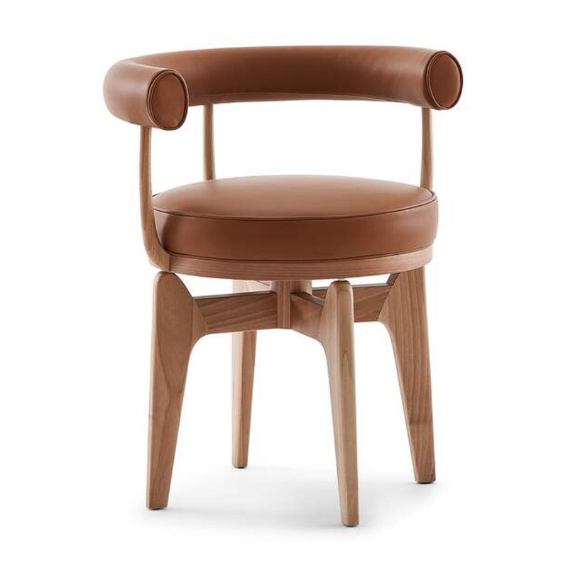 La poltroncina girevole Indochine con 4 gambe è stata ideata nel 1943 da Charlotte Perriand in Vietnam, ricorrendo materie e tecniche artigianali reperibili durante la guerra. Adattamento della poltroncina in tubo metallico 7 Fauteuil tournant (1927), Indochine di Cassina è in legno massello di noce o in frassino tinto nero. I piedini di Indochine sono in materiale plastico. Lo schienale è imbottito in poliuretano espanso schiumato privo di CFC e il sedile in poliuretano espanso privo di CFC e ovatta di poliestere rendono la seduta di Indochine di Cassina comoda e accogliente. La poltroncina Indochine di Cassina è disponibile sia con rivestimento in pelle che in tessuto.