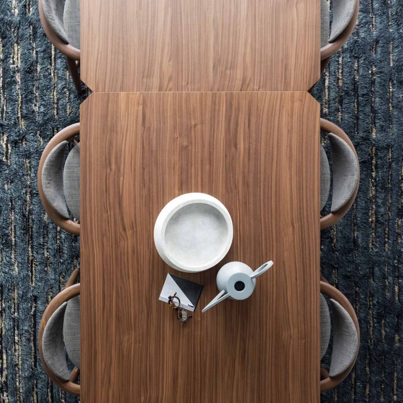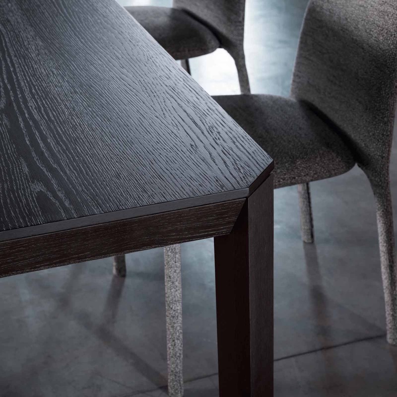 Stretch è il tavolo allungabile Novamobili che si caratterizza per un dettaglio estetico originale: gli angoli sono infatti concepiti con taglio obliquo, elemento non solo estetico ma anche funzionale perché accolgono anche le gambe. Stretch è un tavolo che può ospitare fino a 12 persone, allungandosi da 200 cm a 300 cm, ma all'occorrenza può essere esteso a 250 cm utilizzando una sola allunga da 50 cm. Disponibile in impiallacciato rovere carbone e noce canaletto.