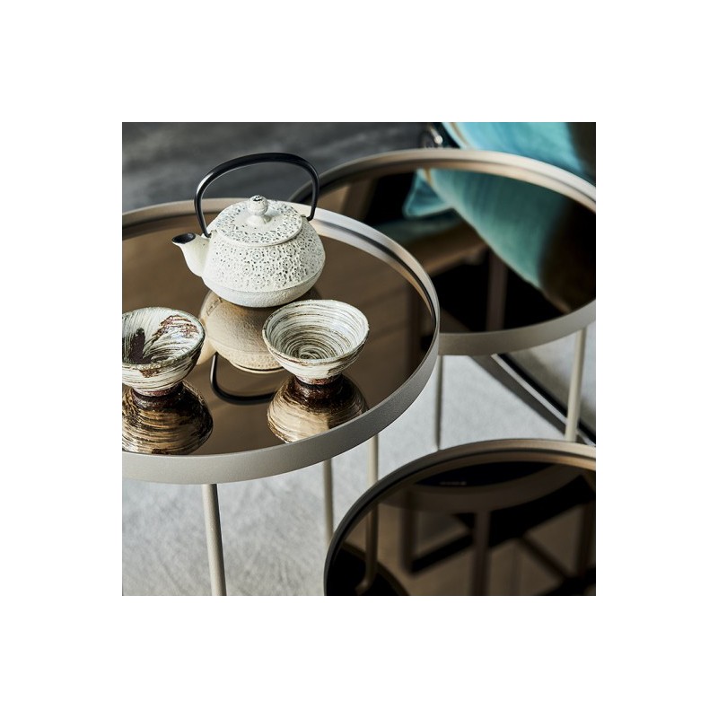 Il tavolino Billy di Cattelan Italia è un versatile ed elegante complemento dal basamento esile in acciaio verniciato e top rotondo in cristallo specchiato bronzo. La struttura è disponibile nella finitura goffrato titanio o nero e in Bronze con cornice del top in Brushed Bronze.