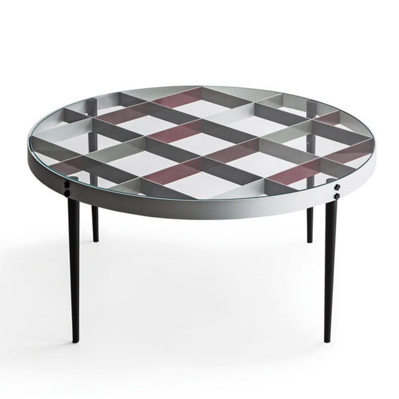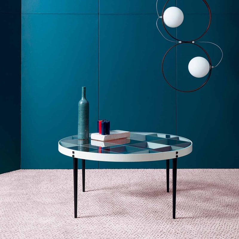 Il tavolino D.555.1 è un progetto di Gio Ponti del 1956, rieditato da Molteni&C per celebrare il maestro nella Heritage Collection in collaborazione con i Gio Ponti Archives. Concepito dall'architetto nel 1954-1955 per la sua casa in via Dezza a Milano Struttura e gambe in metallo, con griglia colorata verniciata a mano, il piano è in cristallo trasparente.