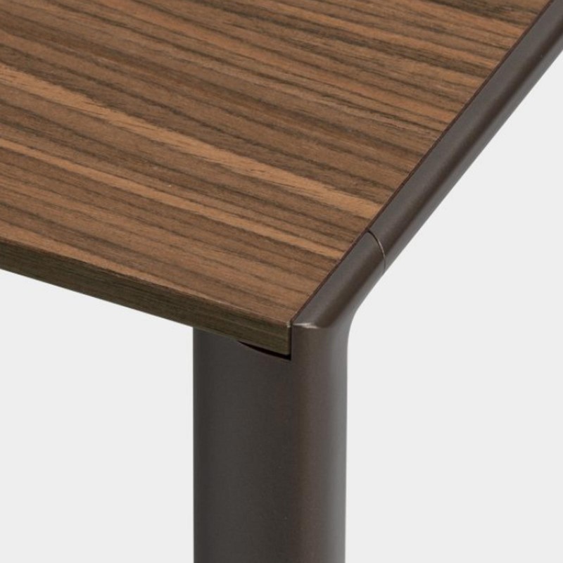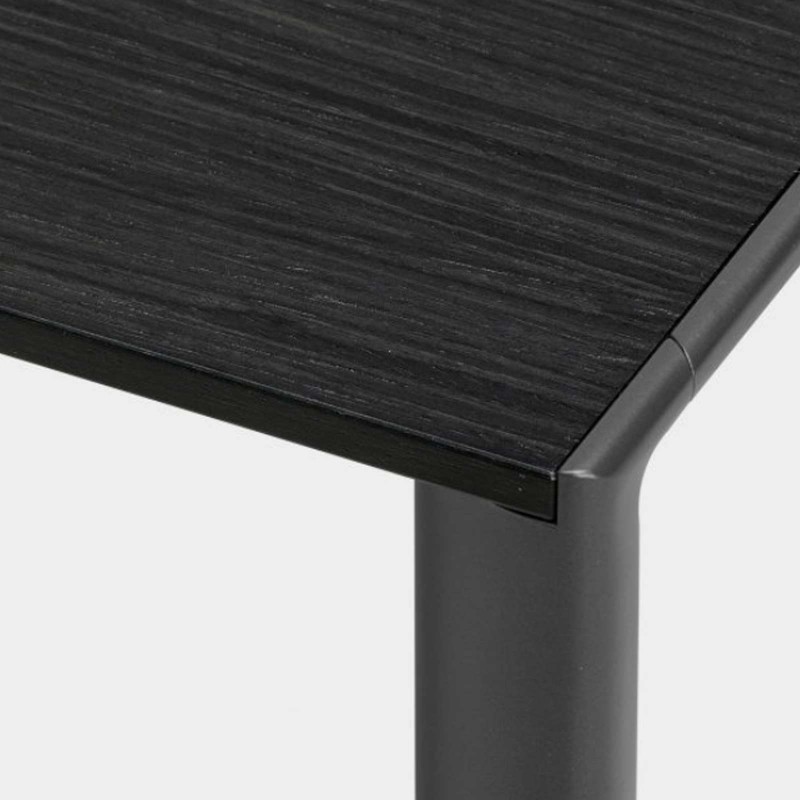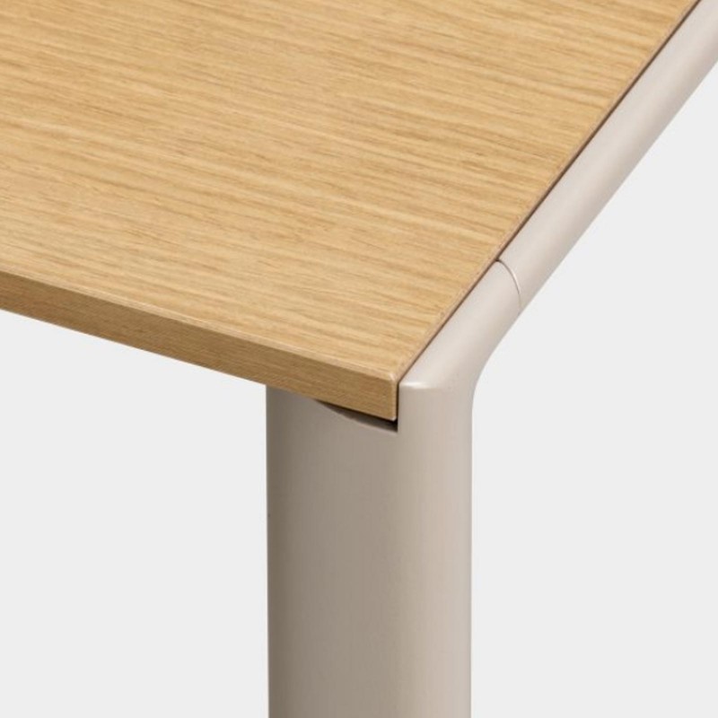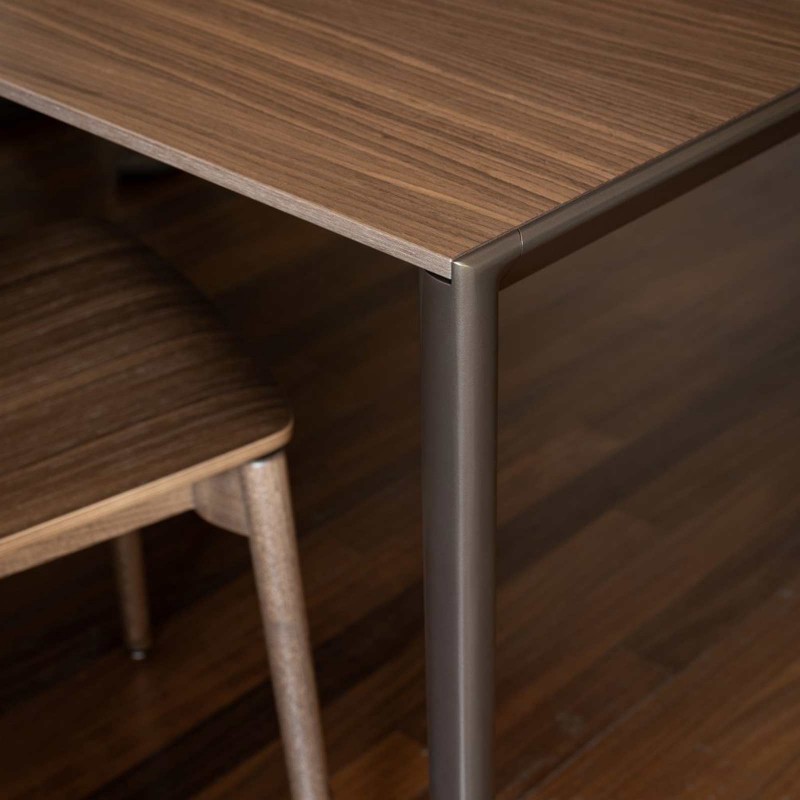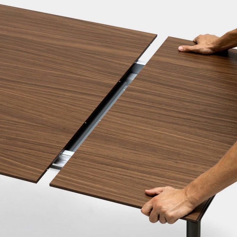 Maki è qui proposto nella versione allungabile con profondità da 90 cm e piano in legno in varie finiture.