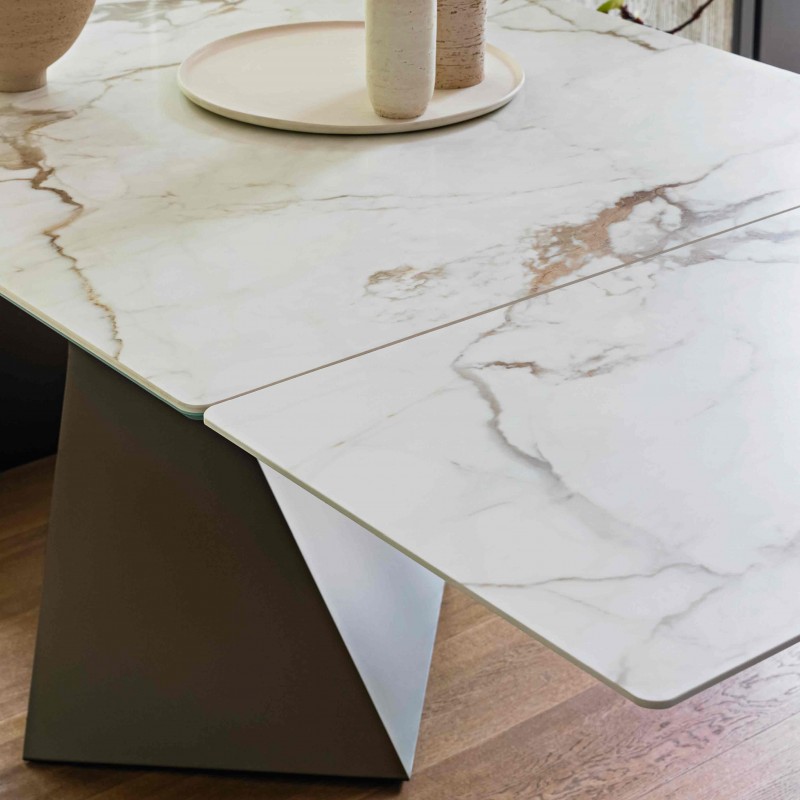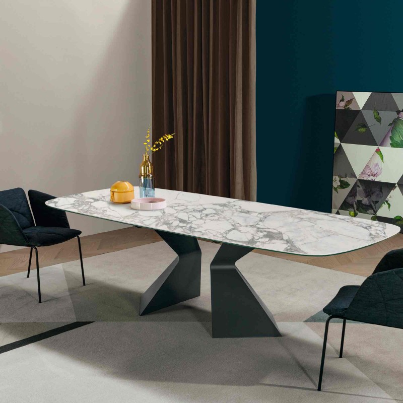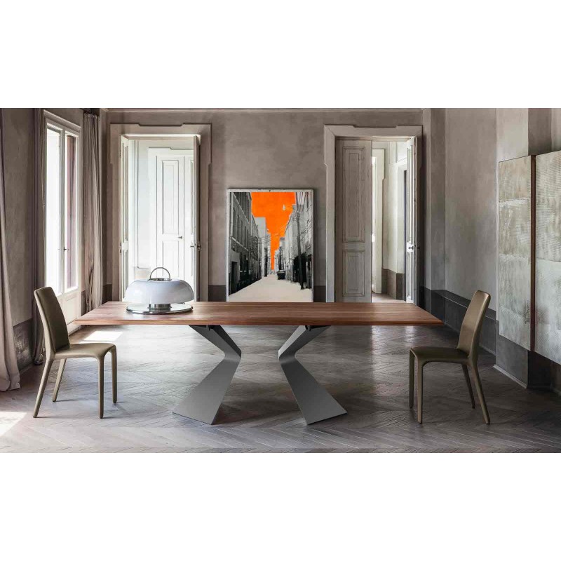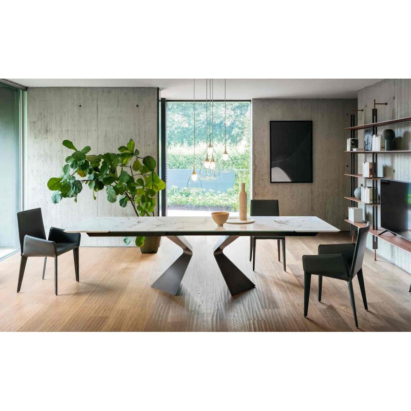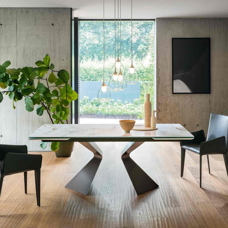 Prora di Bonaldo è un tavolo che naviga sulle onde del design. Le gambe, infatti, ricordano la prua di una nave e sono il vero elemento identificativo di questo complemento per la zona giorno. Disegnato da Mauro Lipparini, Prora è caratterizzata da un piano in cristallo allungabile attraverso due prolunghe laterali ed indipendenti che garantiscono un'ottima solidità della struttura e nello stesso tempo permettono di aumentare con facilità la lunghezza del piano.