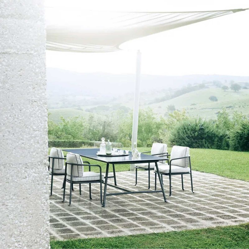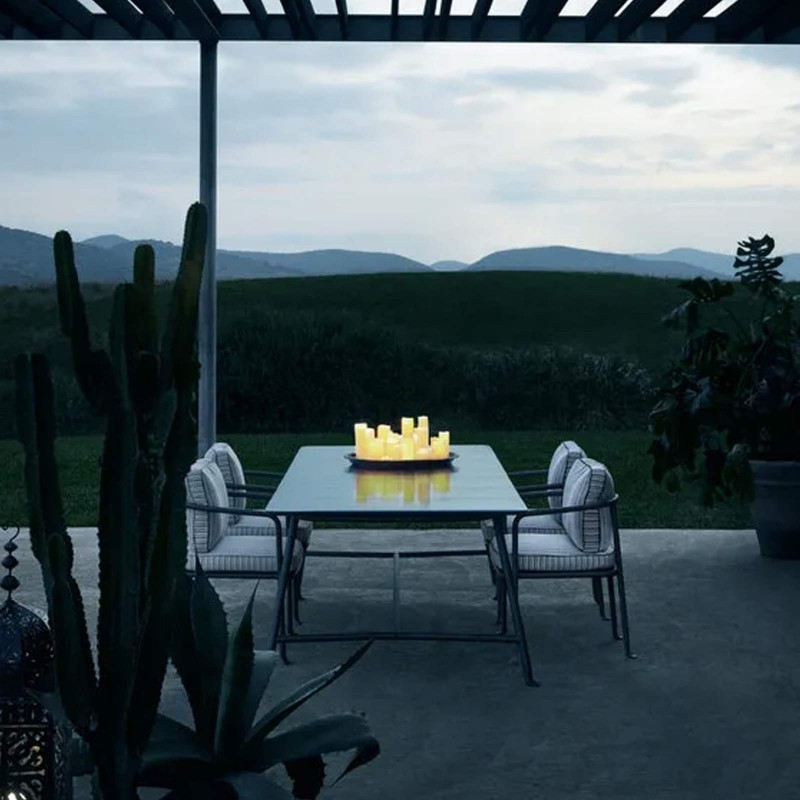 Borea è il tavolo da esterni di B&B Italia Outdoor progettato nel 2021 da Piero Lissoni, ideatore dell'omonima collezione che comprende anche gli imbottiti. Un tavolo monumentale, scultoreo: Borea ha la struttura in acciaio che sostiene il piano in pietra lavica proveniente dalle pendici dell'Etna e lavorato in grosse piastrelle rettangolari smaltate in tre colori: salvia, argilla e blu oceano. Un' ulteriore superficie protettiva smaltata è applicata sopra alla pietra lavica: si tratta di uno speciale materiale ottenuto dal vetro di pc e monitor dismessi. Borea è un'invito alla convivialità en plein air, disponibile in due formati per ospitare 6 e 8 persone.