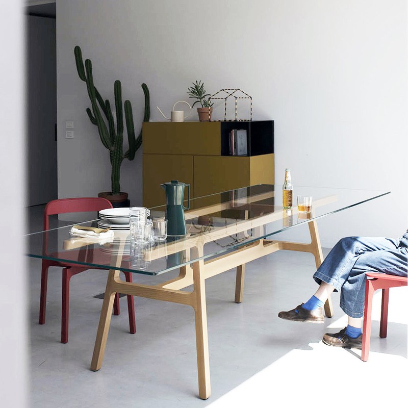 Bottega è il nuovo tavolo Kristalia presentato durante il Salone del Mobile 2023 progettato dal designer Kensaku Oshiro. Bottega è un vero e proprio inno all'estetica funzionale, sia nella forma sia nell'ispirazione: trae spunto infatti dagli strumenti da lavoro quotidiani, come il cavalletto di legno nel laboratorio di un artigiano, di cui prende le fattezze la base in legno. Sì, è proprio nella funzione che Bottega esprime tutta la sua bellezza, così come nei materiali impiegati: la struttura è in massello di legno, mentre il piano è in vetro trasparente o fumè lucido.