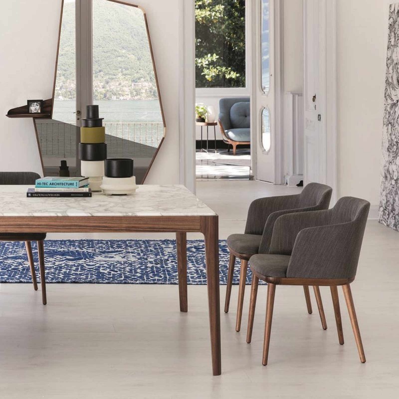 Celine è una sedia di Porada dalle silhouette definite e avvolgenti. La struttura con braccioli è in massello di noce canaletta o frassino ed è disponibile con rivestimento in tutti i tessuti della collezione. Elegante e comoda, Celine è un complemento di grande carattere, perfetto per valorizzare la sala da pranzo o le aree hospitality e lounge.