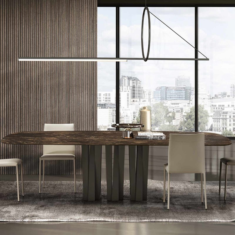 Il tavolo Narciso di Eforma è connotato da una scultorea e decorativa base in metallo disponibile in varie finiture e piano in marmo lucido con bordi obliqui spessore 20 mm. Narciso è perfetto per una zona dining di carattere, dallo spirito luxury.