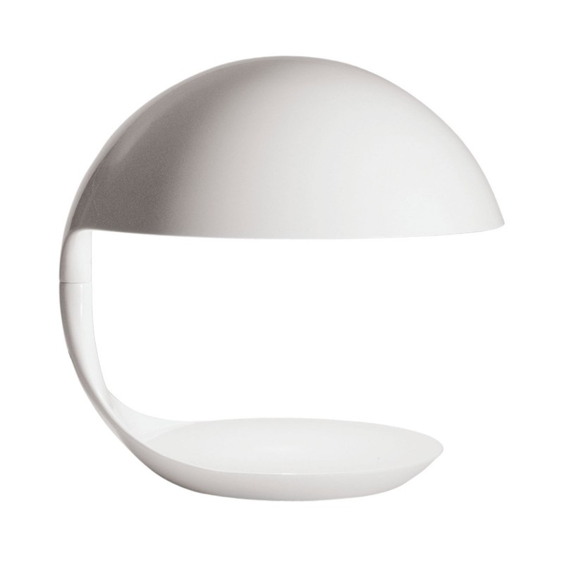 Cobra è una lampada da tavolo a luce diretta, formata da due corpi stampati in resina. Il corpo inferiore ruota sulla base sottostante in acciaio ed è collegato al corpo superiore tramite un giunto centrale che permette la rotazione di 360°. Riflettore interno in alluminio verniciato nel colore bianco.