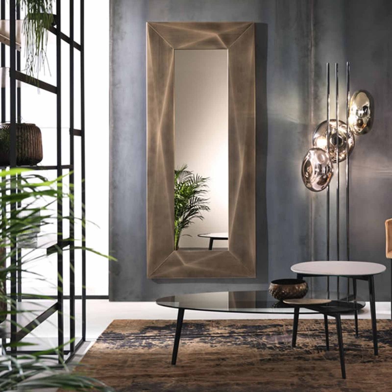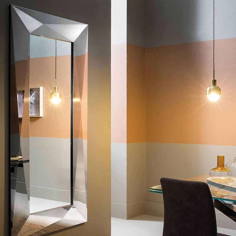 Lo specchio Diamond di Riflessi si caratterizza per la cornice in acciaio specchiante modellata a diamante. Un complemento del brand italiano che rivela la passione dell’azienda per l’effetto tridimensionale, ottenuto con piegatura artigianale attraverso metodo Folding.