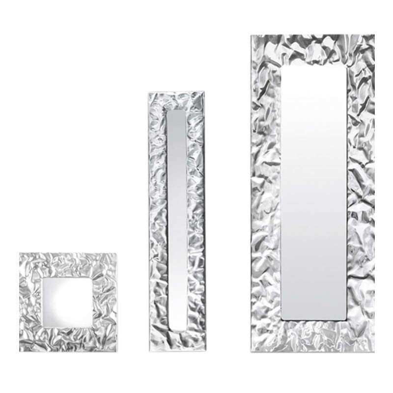Mito di Riflessi è lo specchio caratterizzato da una cornice in metallo martellato artigianalmente. Uno specchio di cui si apprezza l'unicità proprio perché ogni pezzo è forgiato singolarmente. La lavorazione meticolosa risalta così il colore e la lucentezza dell'alluminio. Le eventuali irregolarità di rifessione sull’alluminio sono dovute alla lavorazione manuale. Mito è disponibile in varie dimensioni.