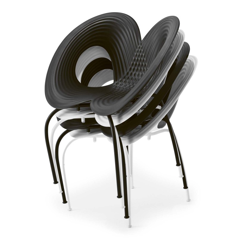 Ripple, la sedia firmata da Ron Arad per Moroso, è una vera e propria icona che rielabora, in modo figurativo e tridimensionale, il segno dell’infinito dando vita a delle forme fluide e dinamiche. Una seduta leggera, sinuosa e dal grande impatto visivo che ben si adatta a qualsiasi spazio.