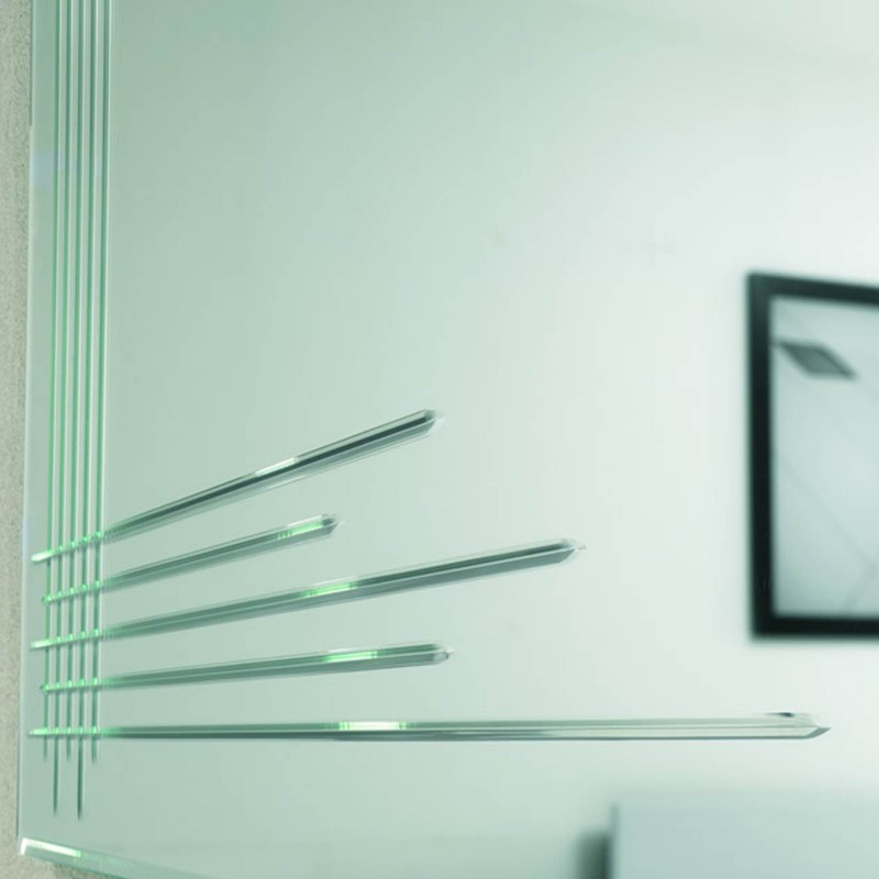 Inciso è uno specchio di Riflessi con incisione decorativa. La decorazione è fatta con linee perpendicolari, poste con geometria e arte. Questo elemento di arredo si presta ad arredare bene bagni e zona living.