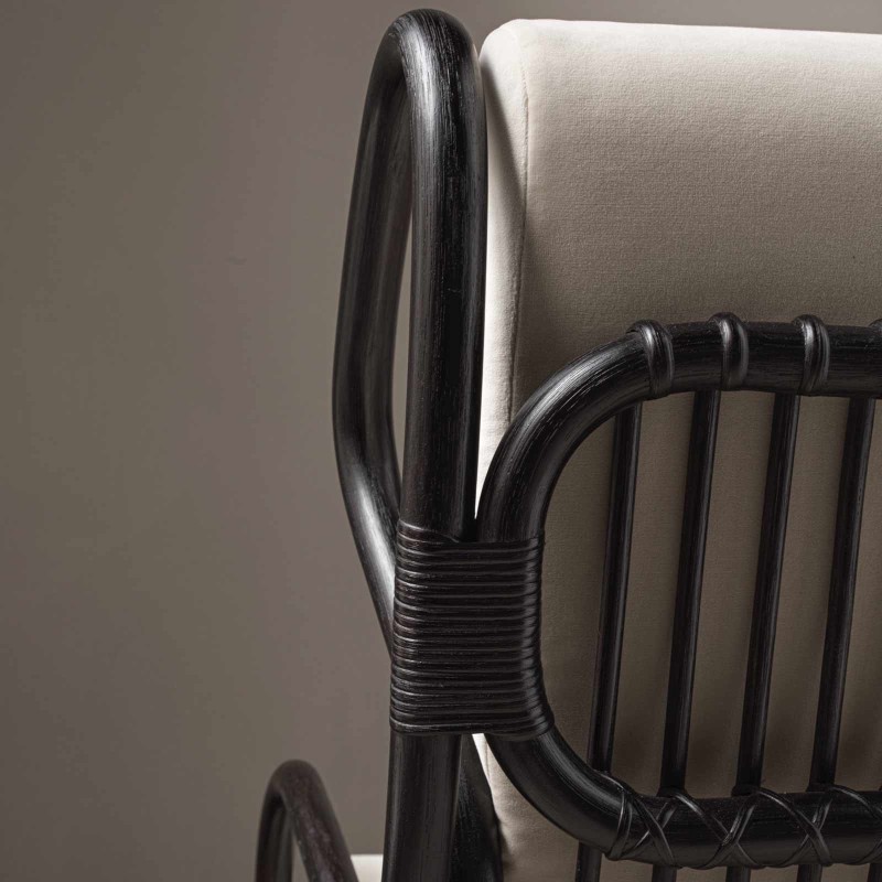 Realizzata interamente in Italia, la poltrona utilizza materiali di prima scelta della famiglia del rattan: manao e midollino provenienti dalle foreste equatoriali dell'Indonesia. La struttura e lo schienale della poltrona sono modellati in canna di manao da abili artigiani, e ogni pezzo richiede oltre 200 ore di meticolosa lavorazione. La seduta realizzata in midollino è fissata alla struttura tramite apposite legature, anch’esse in midollino.