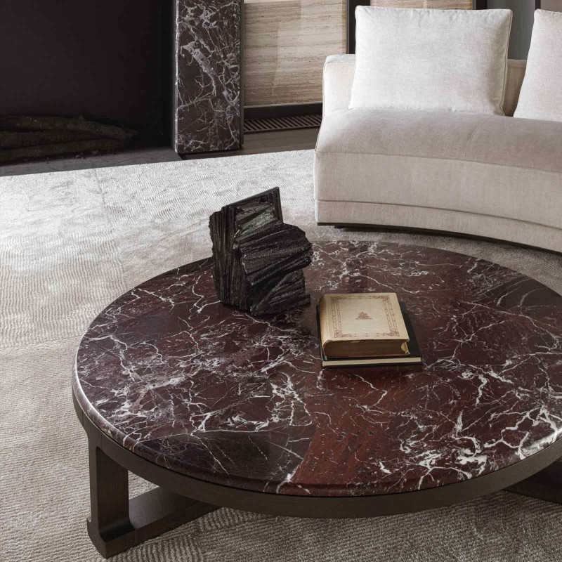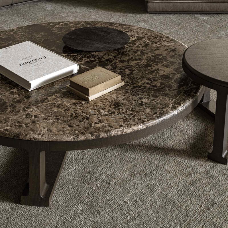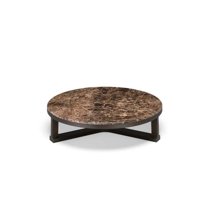 Fonte è la nuova serie di coffee table di Molteni&C, novità 2024, connotata da un piano circolare e dalla struttura composta da tre elementi verticali in legno massello. Il top è configurabile in varie finiture, tra cui il marmo, essenza e vetro retroverniciato nero. Fonte è leggerezza e solidità scultorea allo stesso tempo: un complemento d'arredo che si adatta a vari ambienti come il living, la zona lounge e quella notte. Per la camera da letto, è prevista la versione comodino, arricchito da un comodino (Ø 58 cm) posto sotto il piano e un sofisticato anello superiore dall’elegante verniciatura effetto brunito.