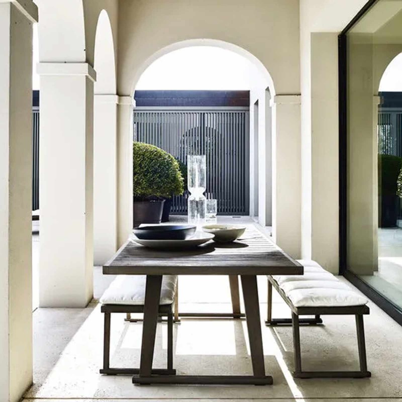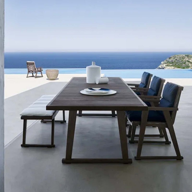 Il tavolo per esterni Gio di B&B Italia disegnato da Antonio Citterio incarna il perfetto stile contemporaneo che non passa mai di moda. Un ampio tavolo ideale per uno scopo conviviale, Gio è proposto in due dimensioni nel formato rettangolare. Protagonista di questo tavolo della collezione outdoor di B&B Italia è il piano a doghe in massello di teak nella finitura antique grey che vira verso riflessi argentei. Il tavolo Gio può essere completato dalle sedie della stessa collezione.