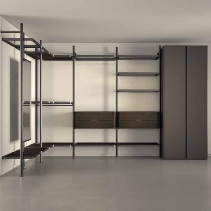 • Montanti a pareti, telaio ripiani, aste appendiabiti in finitura peltro