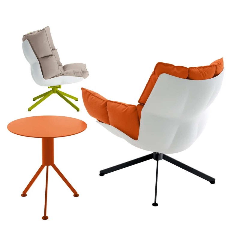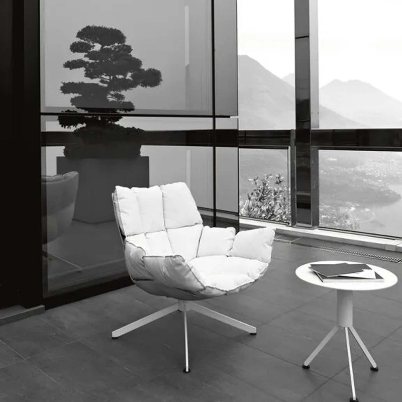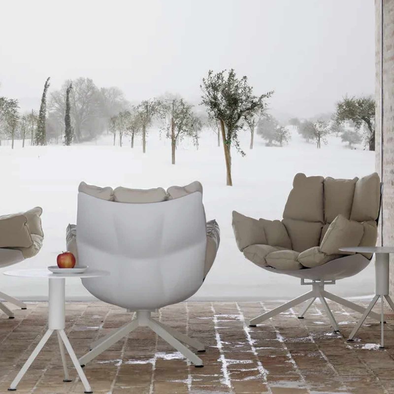 La poltrona Husk Outdoor di B&B Italia riprende la celebre collezione disegnata da Patricia Urquiola in chiave outdoor ed ecosostenibili. Relax sotto le stelle: comfort assicurato con Husk, che è contraddistinta da una generosa imbottitura extra soft capitonnè. La scocca (disponibile in bianco) rigida che custodisce il rivestimento è in Hirek®, un materiale plastico speciale formato da polimeri riciclati e riciclabili. La base in alluminio è disponibile in vari colori.