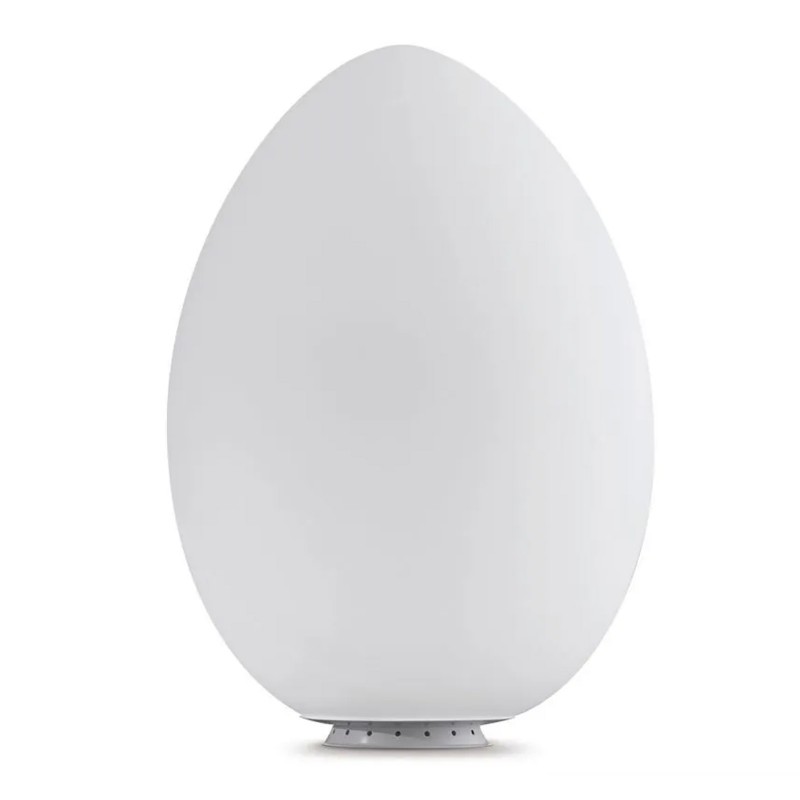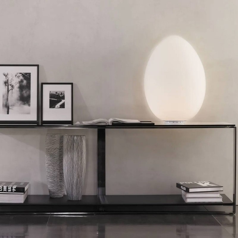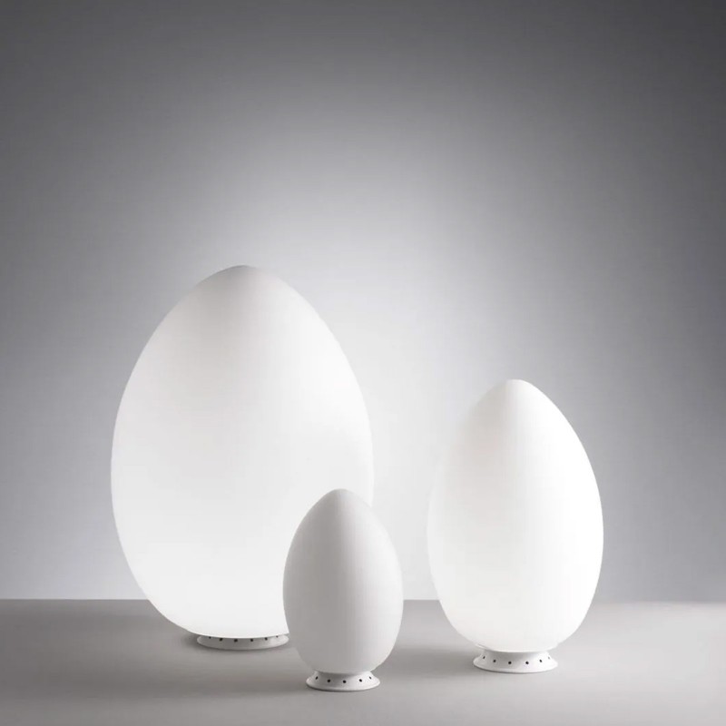 La lampada da tavolo Uovo di Fontana Arte è un complemento di design dal carattere allegro e spiritoso. L’Uovo, simbolo per eccellenza della perfezione, viene ripreso da Fontana Arte per dar vita a questa lampada dove simmetria e asimmetria non solo convivono, ma si integrano perfettamente l’una nell’altra. La struttura di Uovo, in vetro soffiato bianco satinato, richiama la leggerezza del guscio e contribuisce a diffondere nella stanza una luce calda e accogliente.