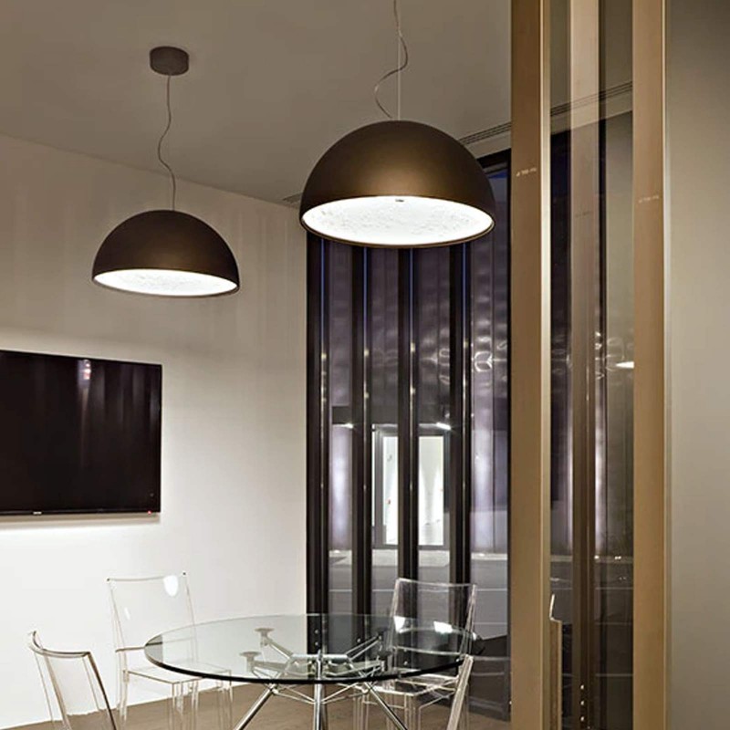 La lampada Skygarden di Flos contrappone modernità e classicismo. Una grande cupola in alluminio disponibile in varie finiture opache o brillanti che custodisce una decorazione in gesso bianco, modellata con decori e fregi neo-classici, così come il diffusore interno in vetro opalino rivestito da un acciaio con texture effetto pizzo. In questo dualismo, un ossimoro estetico di grande impatto, Marcel Wanders si è ispirato ad un ricordo personale della sua infanzia, dove nel soffitto della sua casa vi erano proprio dei fregi. Skygarden è disponibile nella versione 1 con diametro 60 cm o 2 con diametro 90 cm.