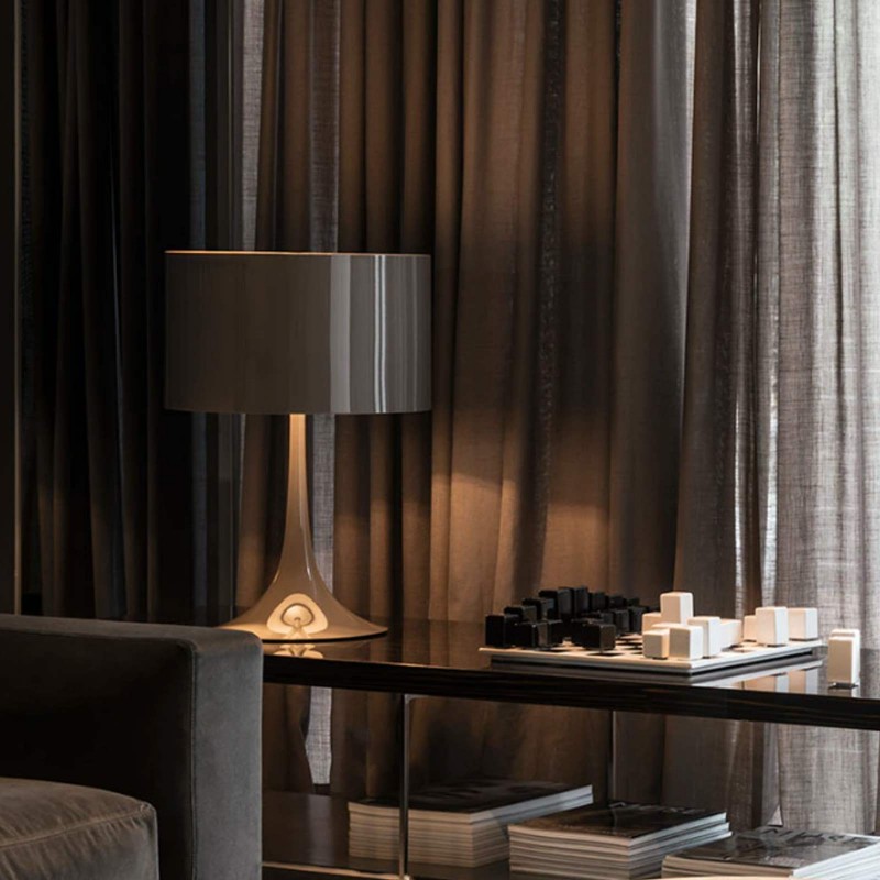 Spun Light di Flos è una lampada da tavolo a luce diffusa progettata nel 2003 da Sebastian Wrong. Moderna e discreta, dribbla le tendenze confermandosi un oggetto luminoso dalla semplicità formale. Dimmer incluso per consentire la regolazione dell'intensità luminosa.