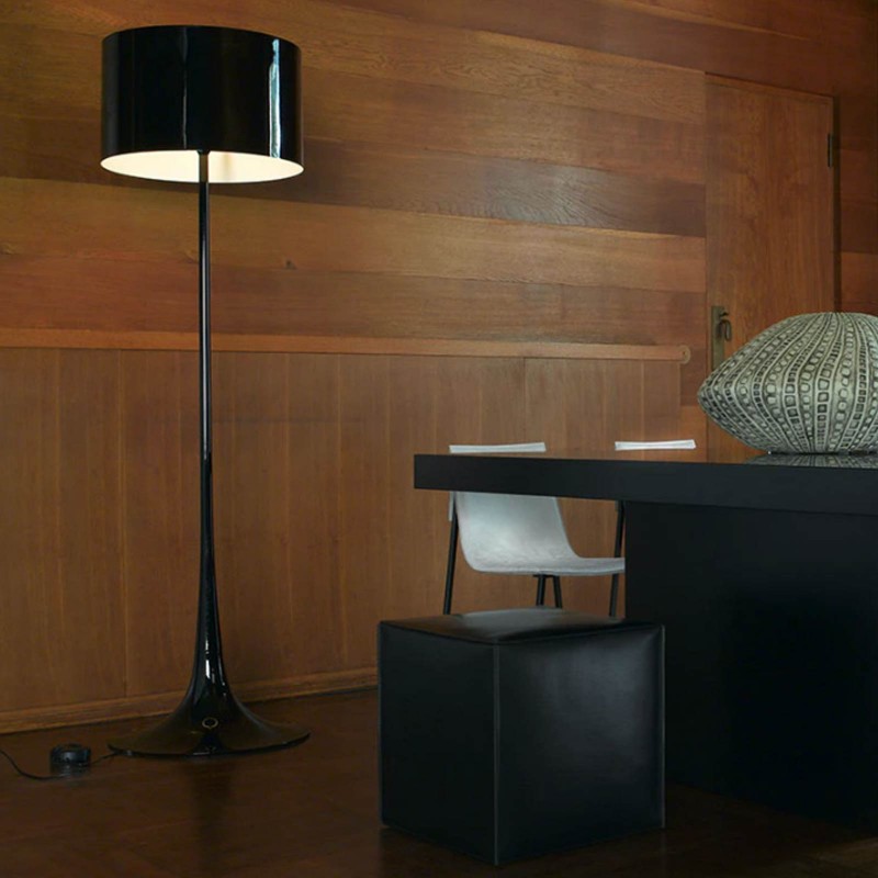Spun Light di Flos è una lampada da pavimento a luce diffusa progettata nel 2003 da Sebastian Wrong. Moderna e discreta, dribbla le tendenze confermandosi un oggetto luminoso dalla semplicità formale. Dimmer incluso per consentire la regolazione dell'intensità luminosa.