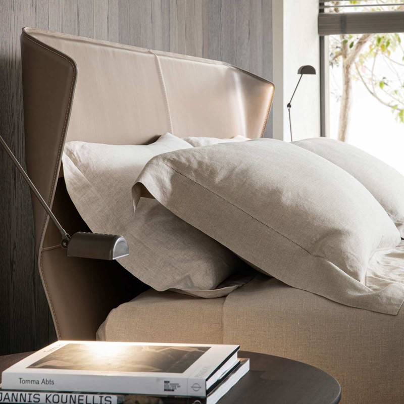 Il letto Azul di Molteni&C è un progetto del designer milanese Nicola Gallizia. Apparentemente semplice, Azul si rivela nella ricchezza di dettagli studiati con cura. Con uno sguardo verso la tradizione e una prospettiva contemporanea, Gallizia concepisce un arredo per la zona notte dalle linee nette ma non troppo rigorose. Due fogli in cuoio rigenerato cuciti o in rivestimento tessile, o pelle, delineano Azul, che incarna l'attitudine stilistica di Molteni&C.