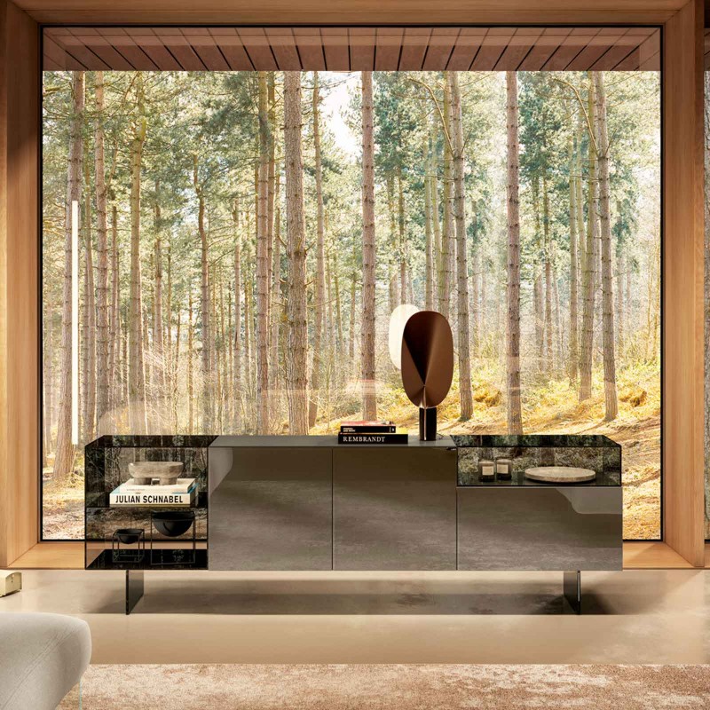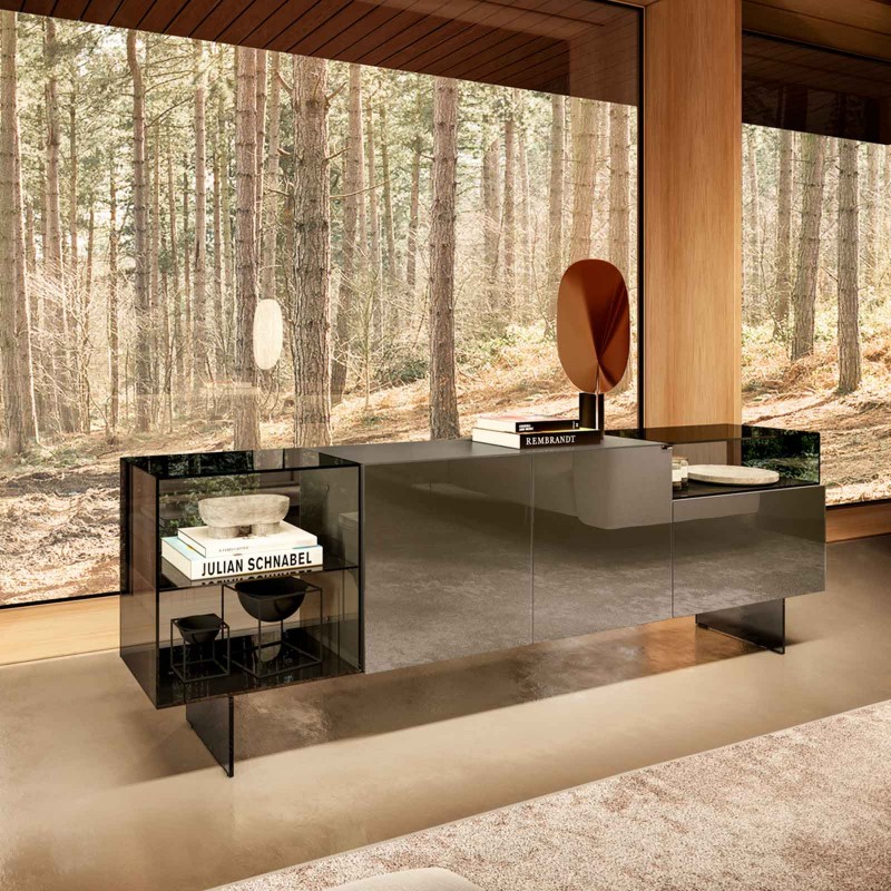 Lago reinterpreta un classico della propria collezione: 36e8, il sistema versatile di contenitori dai volumi decisi con l'elegante lavorazione a 45 gradi e alternanze in vetro, ora anche nella finitura fumè grigio o bronzo. Madie sofisticate dal design contemporaneo, che si svelano in un gioco di pieni e vuoti esaltati da finiture come il vetro lucido o opaco, effetti marmorei o legno con XGlass o in legno Wildwood.
