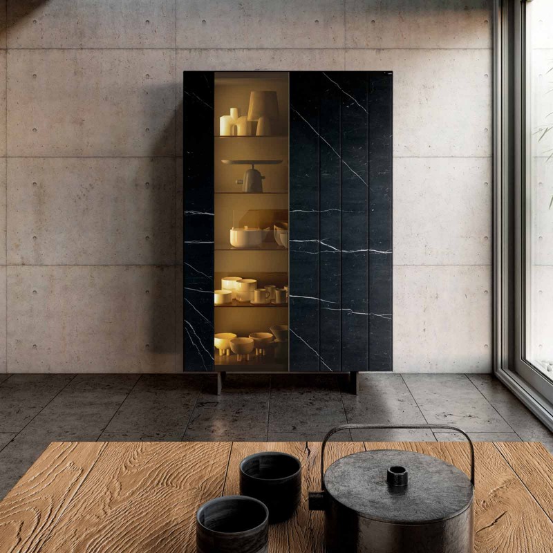 Lasciati ispirare dalla gamma di finiture XGlass effetto marmo, metallo o legno per rendere unica la tua madia sospesa N.O.W di Lago.