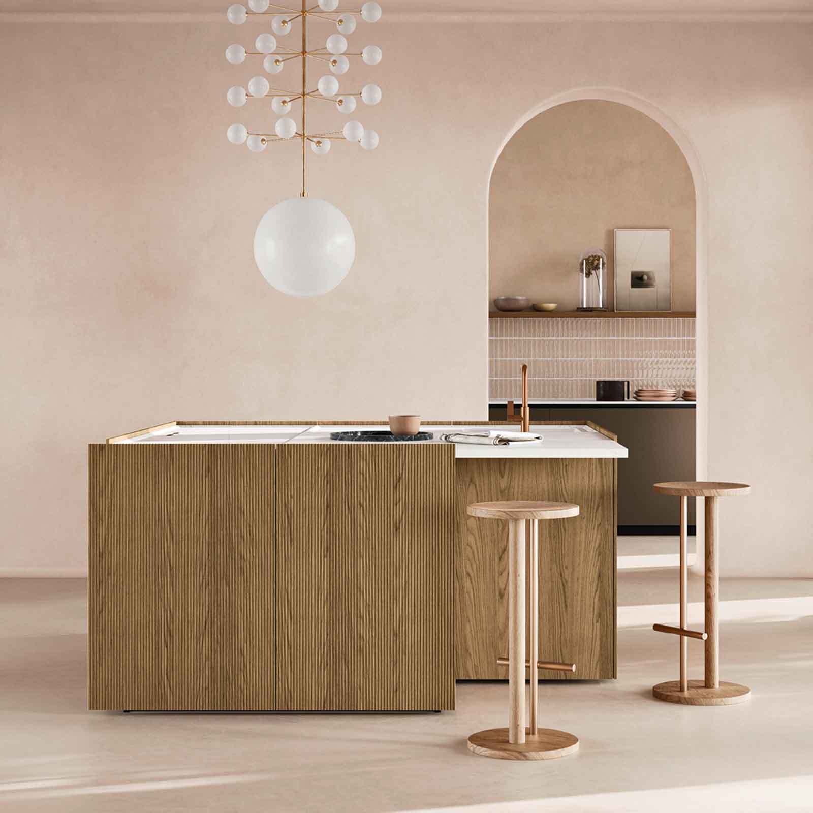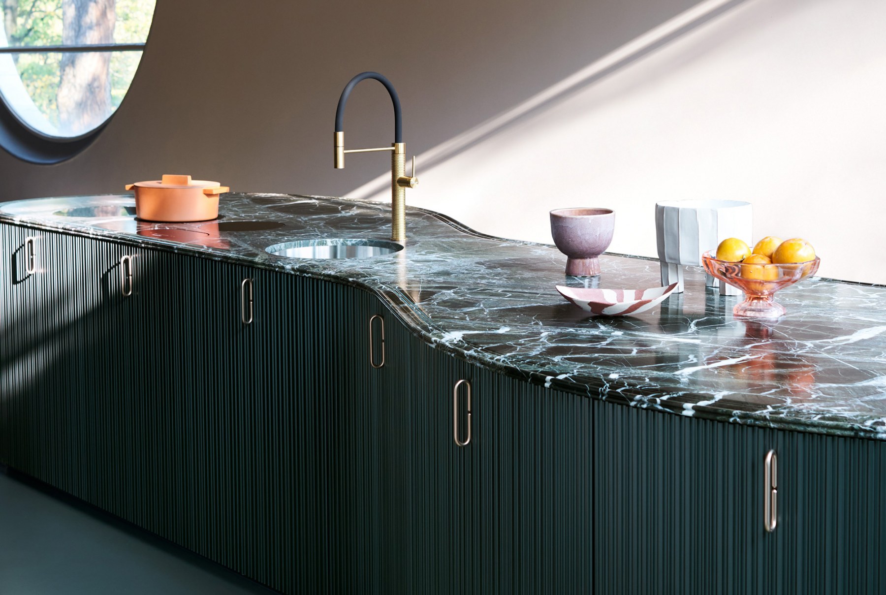 Tra le tendenze 2024 della cucina non possiamo non citare le proposte caratterizzate da forme inconsuete, lontane dalle solite geometrie rigorose a cui siamo abituati ma che strizzano l'occhio a volumi più fluidi.