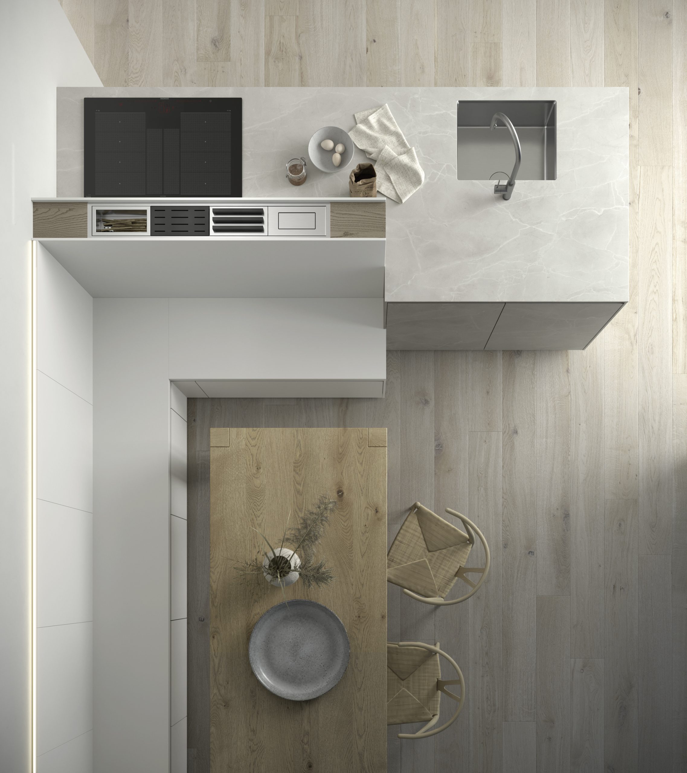 Sistema Terra-cielo applicato sulla cucina Riciclantica Outline - Valcucine