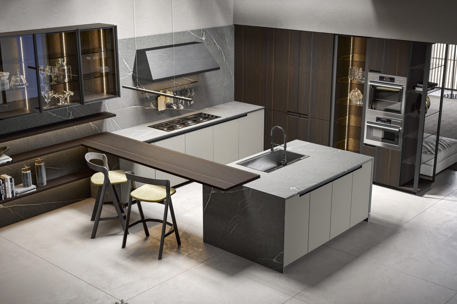 Ed è proprio per questo motivo che la cucina si "spoglia" delle sue funzioni e tende sempre più ad un'elevazione estetica. Perché oltre a sceglierla per il suo lato pratico e funzionale con una buona organizzazione e spazi agevoli per cucinare, vogliamo renderla bella da vedere. Ricerchiamo l'effetto wow e i brand ovviamente hanno intercettato questa esigenza traducendola in programmi dal design ricercato e raffinato.