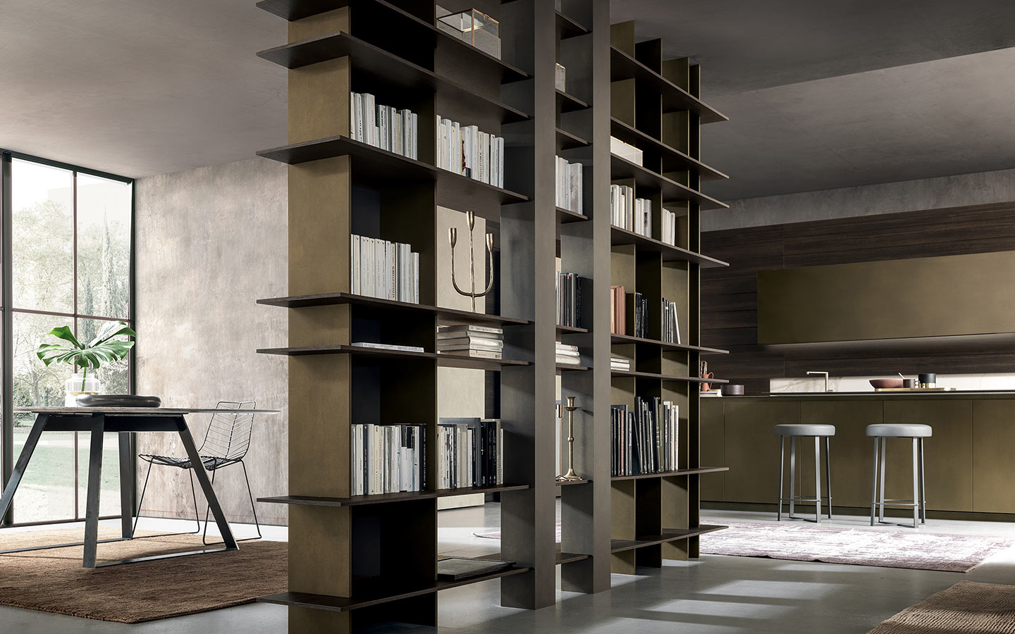 In linea con la nuova direzione "fluida" degli spazi dell'abitare, dove la cucina e il living diventano un tutt'uno grazie a soluzioni progettuali che garantiscono una continuità stilistica e funzionale, le librerie proposte nel catalogo delle cucine diventano veri e propri sistemi giorno con ampia possibilità di personalizzazione. Di fatto, non solo elementi "accessori" come eravamo abituati a vedere intorno al mondo cucina, ma arredi "indipendenti" che definiscono lo spazio fornendo ulteriori spunti nella fase di progettazione.