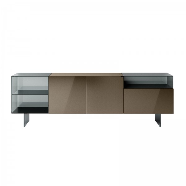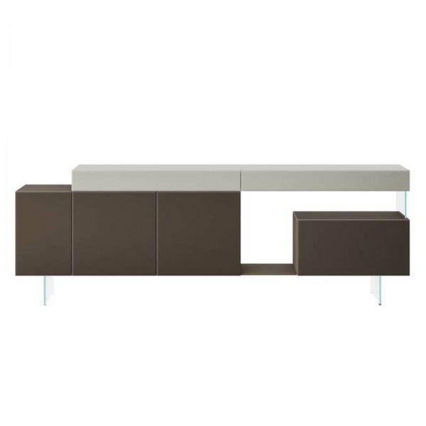 La cucina è Modulnova, mentre i complementi d'arredo come il coffee table e la madia sono di Lago