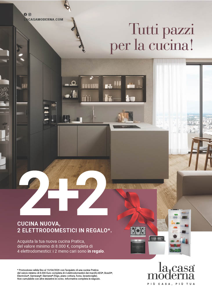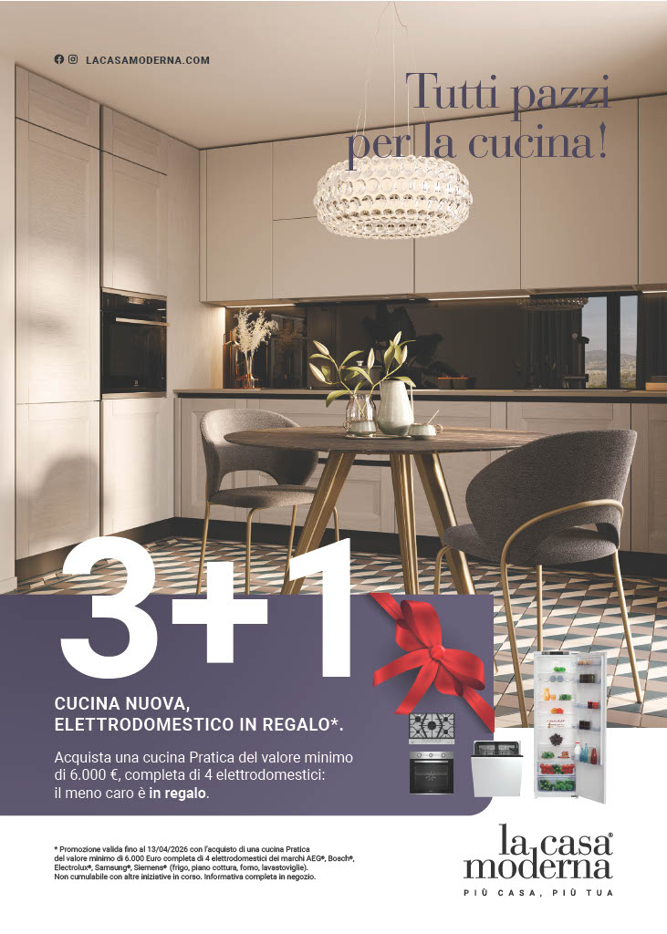 Non rimandare l'acquisto della nuova cucina! Approfitta delle promozioni valide fino al 13 aprile sulle cucine La Casa Moderna: puoi ricevere in omaggio gli elettrodomestici e non solo