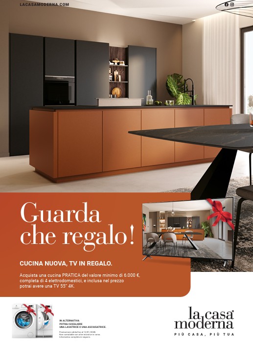 Devi comprare una nuova cucina? Approfitta delle promozioni valide fino al 12 gennaio 2026 sulle cucine La Casa Moderna: puoi ricevere in omaggio gli elettrodomestici e non solo! Scopri di più sotto