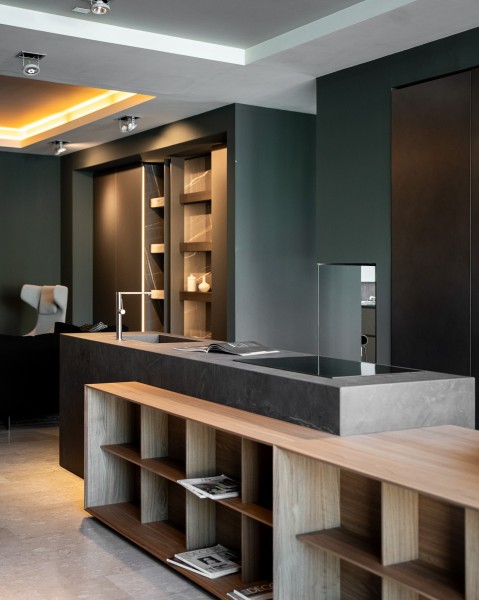 Novanta, Boffi - design by Piero Lissoni. Una cucina progettata per festeggiare l'anniversario del brand. Novanta è una cucina di chiara ispirazione architettonica: sembra un edificio sospeso grazie al basamento arretrato, che funge da appoggio ai contenitori con pannelli in finitura, crea l’illusione che l’intera unità fluttui al di sopra del pavimento.