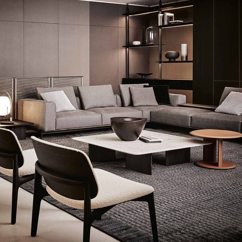 Mush è il sistema di tavolini firmati Poliform appartenenti alla nuova collezione presentata al Salone del Mobile 2022, progettato per completare la zona giorno con il nuovo divano Brera. Mush è disponibile nella forma quadrata o rettangolare, con angoli smussati, oppure circolare. La struttura è in olmo nero, mentre il piano è configurabile in essenza - olmo nero - o marmo levigato o lucido.