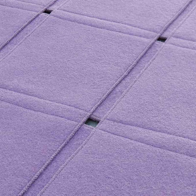 Net è il tappeto di Paola Lenti in feltro realizzato da una serie di elementi bordati a punto Pettine. Un reticolo tessile che lascia spazio a minuscoli vuoti in grado di dare movimento al disegno del tappeto, Net è formato infatti da strisce parallele sovrapposte in modo ortogonale. Prodotto solo con doppio strato di feltro. Tutte le cuciture sono eseguite tono su tono sul colore scelto.