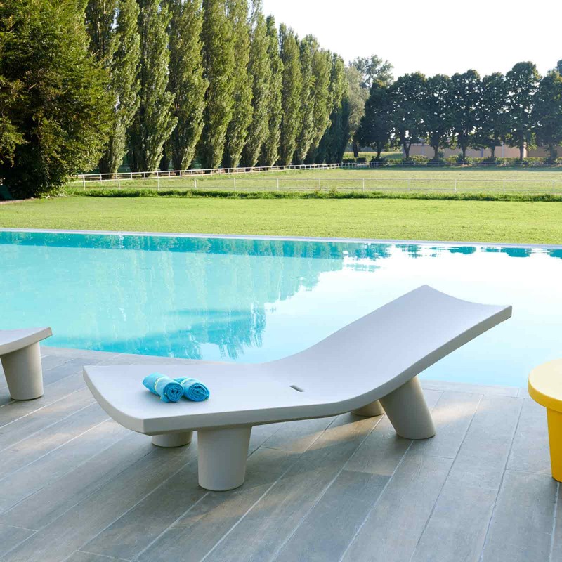 Low Lita Lounge è la chaise-longue di Slide design by Paola Navone. Il design, sottile e pulito per lo schienale e la seduta, contrasta con le quattro importanti gambe che la reggono e che le conferiscono solidità formale e funzionale: un richiamo allo stile africano di seduta, ma reso contemporaneo e giocoso dal materiale con cui è realizzata, il polietilene. Il profilo leggermente curvato della base, che sviluppa l’area di appoggio verso l’esterno, rende Low Lita Lounge particolarmente invitante e confortevole.